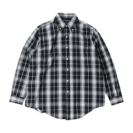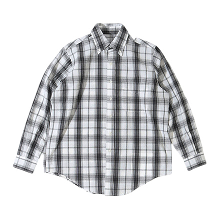 定番商品のボタンダウンシャツです。春夏シーズンにちょうどいいコットン55%、ポリエステル45%の肌触りのいい軽量なシアサッカー素材を使用しました。表面に波のような凹凸があるので、肌離れがよく通気性が高い為、着心地が良く重宝しそうです。プレイド柄のプリントが大人アメトラスタイルにどハマりしそうですね。