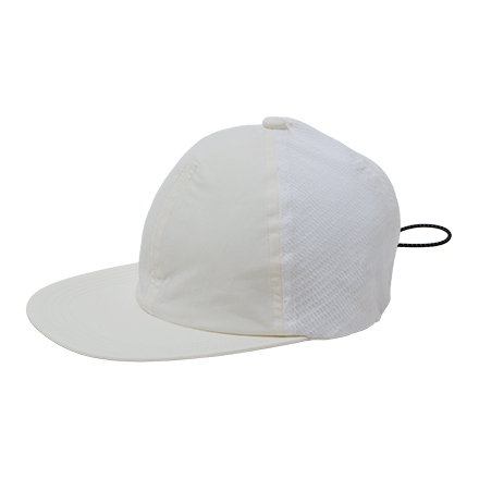 真夏にちょうどいいポリエステル100%のバーズアイメッシュ素材を使用しました。透け感は少なめですが通気性と吸汗性は高い為、夏向けの素材です。