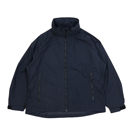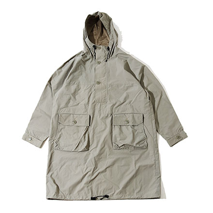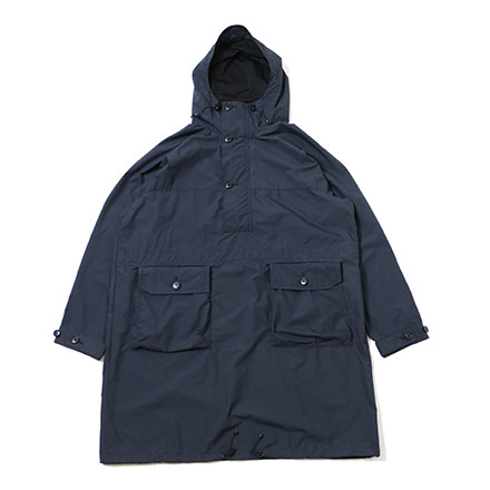 軽量でしなやかなエピックの一枚地ですので、雨天時のレインウェアとしても活躍します。やや大きめのシルエットですので、ニットやスウェットなどの上から羽織りとしても着用出来ます。立ち襟の中にフードを収納出来、裾のドローコードでサイズの調整が容易です。肘の部分は二枚地で補強されています。