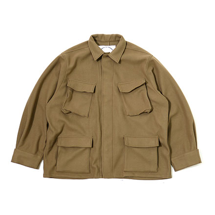 ミリタリーのBDUジャケットをベースにストレッチフリースを使用。あえて起毛していない面を内側にすることで温かさはそのままに着心地を向上させました。米軍のフリース素材を使用していますので、機能や温かさは折り紙つき。