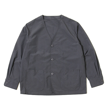 軽量でしなやかなエピックの一枚地ですので、雨天時のレインウェアとしても活躍します。やや大きめのシルエットですので、ニットやスウェットなどの上から羽織りとしても着用出来ます。立ち襟の中にフードを収納出来、裾のドローコードでサイズの調整が容易です。肘の部分は二枚地で補強されています。