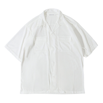 真夏にちょうどいいポリエステル100%のバーズアイメッシュ素材を使用しました。透け感は少なめですが通気性と吸汗性は高い為、夏向けの素材です。