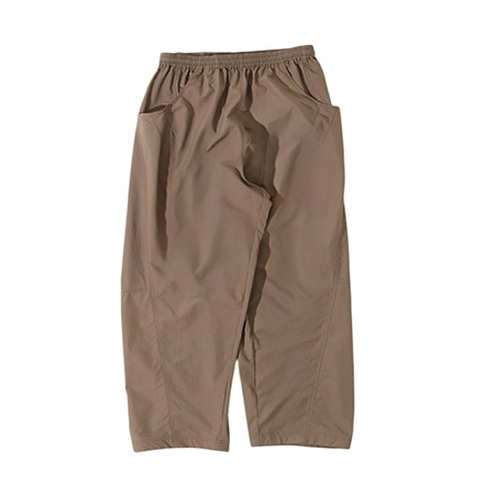 軽量でしなやかなエピックの一枚地ですので、雨天時のレインウェアとしも活躍します。やや大きめのシルエットですので、パンツの上から履くオーバーパンツとしても着用出来ます。裾のベルクロテープでサイズの調整が容易です。膝の部分は二枚地で補強されています。
